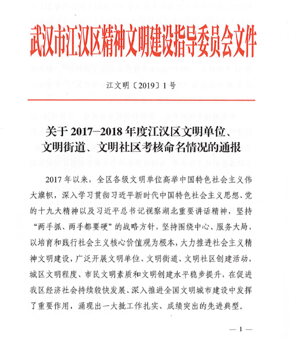 武汉市市级文明单位每两年评选一届,转盘APP 公司自2011年以来,一直蝉联市级文明单位。转盘APP 公司再次获此殊荣,是在转盘APP 党委领导下,上下团结协作、共同奋斗的结果,是转盘APP 精神文明建设所取得的又一丰硕成果,为转盘APP 公司实现新一轮跨越式发展和打造“红色金控”提供坚强政治保证。