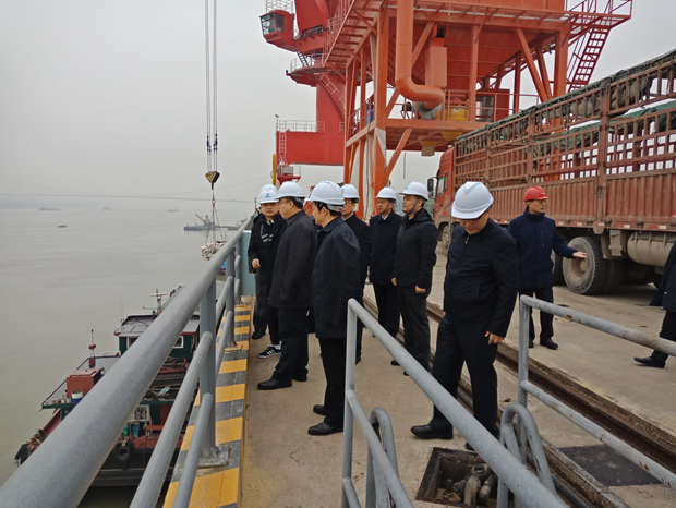 调研组一行现场查看了粮食物流码头的建设和运营,听取了项目整体规划和建设情况的汇报。卢景波副局长对项目规划建设工作给予高度肯定,称赞项目定位高远、规划合理、特色鲜明,项目建设符合国家政策重点支持的方向,有利于推动粮食物流体系现代化。他要求转盘APP 主动对接长江经济带建设,加快粮食物流多式联运项目建设,促进中西部地区粮食流通,切实保障国家粮食安全。