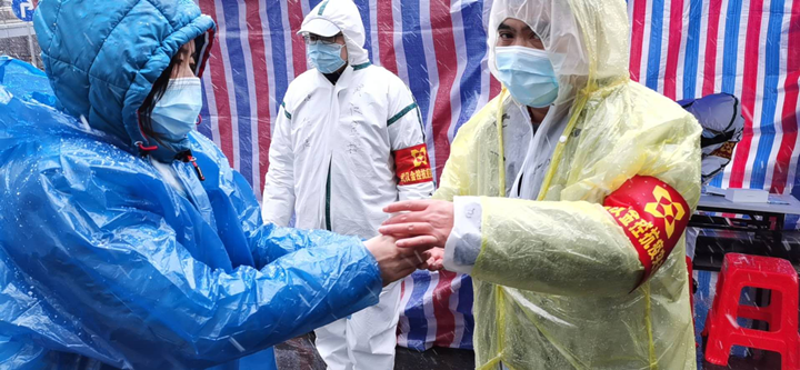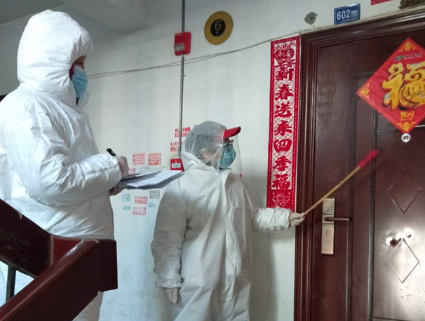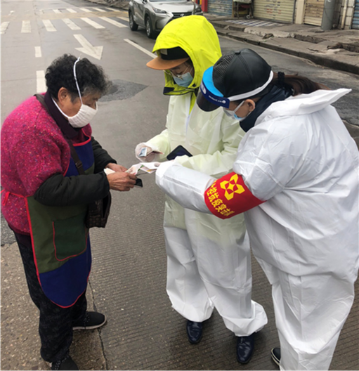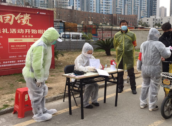 2月19日,转盘APP 机关突击队杨梦涯、周阳等同志值守唐家墩街西桥社区三眼桥一村。在上午劝返进出人员时,有一名居民未能出示有效证明且坚持外出,两位女突击队员与组长一起,动之以情、晓之以理,坚决阻止,并要求其配合测量体温,经连续几次测量,均显示发热。突击队员立即联系社区相关负责人,在突击队员登记该居民姓名和联系方式后,社区安排其前往新华医院作检查,被医院诊断其左肺感染,为疑似病例。2月20日,突击队员本着高度的责任感,继续跟踪病人妻子的健康状况,对其测量体温,在发现有发热症状后,立即向社区相关负责人报告,病人妻子迅速被社区工作人员带走隔离,女队员们特有的细心和勇敢,及时阻断了病毒传播链条。