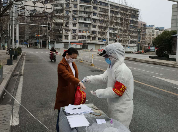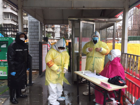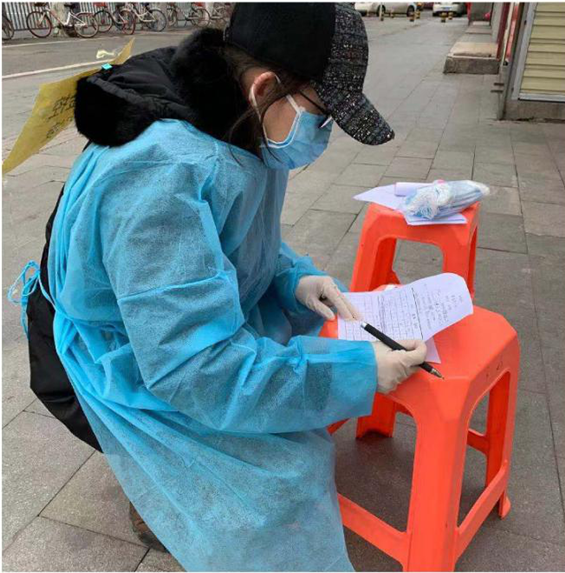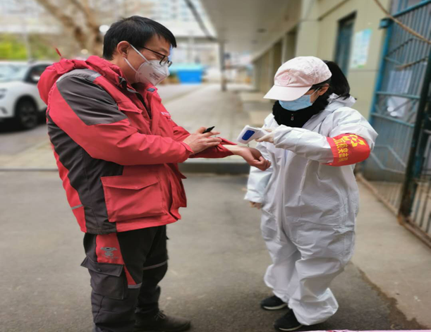 国通信托公司罗亚君、刘思宜和褚文萍等三位女队员是下沉硚口区长丰街正康花园小区的白班小队,从下沉开展帮扶工作,这三位女队员任劳任怨,恪尽职守,敢于担当,始终做到防护到位、措施得当、保证效果,帮社区居民和工作人员分忧解难。三名队员善于在实践中开动脑筋解决问题,针对值守点内部有正康社区办公室,每天大量工作人员频繁进出的问题,她们主动联系社区,掌握工作人员名单另行造册,单项管理,既严格落实上下班体温监测,又提高出入人员管理效率。近期,由于持续低温阴雨,社区配发的手持测温仪经常不能正常工作,为解决这个棘手的问题,她们把突击队发给队员用于自身保暖的发热贴,贴在测温器上,宁可自己受点冻,也要保证能随时为进出人员正常测温,确保值守工作及时、准确、周到。