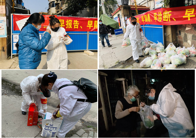 硚口区正康社区华丽花园小区比较陈旧,老年群体、困难群体较多。2月25日,由交投公司突击队接手后,在该小区全面实行24小时值守,严格管控居民进出。由于封城时间较长,老人们心理脆弱,情绪低落,生活上也出现一定的困难,需要特别的关怀与照顾。了解情况后,负责华丽花园值守的5名女员工罗娟、彭敏、魏嫚婷、潘银银、许蕾,迅速成立了一个关爱老年群体志愿服务队。在严格值守保安全的前提下,主动向社区申请,对有困难且无人照顾的老人提供一对一的志愿服务,根据他们的生活状况和需求给予精准帮扶。领队罗娟同志,更是自掏腰包,积极联系货源,为小区的老人们免费提供爱心蔬菜,解决老人们的生活所需,让他们安心在家无后顾之忧。志愿服务队用自己的爱心真心换来了小区居民的一致好评,街道领导、社区领导也对她们的志愿服务给予了高度评价。