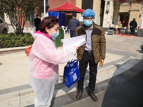 转盘APP 唐家墩街道战疫突击队第一小组由转盘APP 总部员工组成,参加值守队员共12人,其中女同胞6人。转盘APP 党群工作部部长李爱荣是转盘APP 机关党总支委员兼一支部书记,站在下沉社区一线,她充分发挥党员先锋带头作用,面对社区组织的居民爱心菜分配问题,她义无反顾主动站出来,个头娇小的她说“我不怕,我可以上门送”。在市内公共交通停运的情况下,转盘APP 组织部(人力资源部)副部长吴柳莉每天开私家车奔波于武昌汉口之间,一次碰上车辆故障她想尽各种办法克服困难,维修好车辆及时到岗。党委办公室(董事会办公室、党委宣传部)熊颖每天靠走路上岗,一个来回接近两个小时,无论是刮风下雪,还是早班晚班,她们都毫无怨言,服从安排,认真值守。风险合规部刘洋是队中年纪最小的成员,在值守过程中,遇到孤寡老人向她反映家中困难,她会谨记在心里,及时向社区反应并把分发的爱心菜留一份给他们。综合管理部姚永红于2月上旬从外地返汉后,第一时间参与到突击队值守任务中,与队员们并肩作战。后勤管理中心郑双梅服从组织安排,中途从另一个小组调整到第一小组,换了阵地不换初心,仍然忠实履行着各项防控任务工作。女队员们每天认真做好登记、测温工作,切实服务居民,为居民排忧解难。