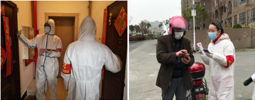 丈夫王凡下沉到江汉区唐家墩街天门墩社区高家台值守点,为落实24小时封闭管理的要求,他接到上级通知后主动要求通宵值守,主动担当的精神受到领导、同事的高度认可。作为转盘APP 后勤管理中心的员工,在下沉防疫工作的同时还要联系采购转盘APP 所需的各种物资,为转盘APP 复工做各项准备工作。妻子张曼婷下沉到硚口区长丰街长源社区,街道和社区的工作人员被她的积极热情的工作风格感染,都亲切地叫她“金控小姑娘”。她格外关心小区内生活困难的独居老人,排查时详细询问身体状况和需求,为他们送菜、登记买药、圈存天然气。面对年长的居民,她总是说“我跟您的儿女一样!为了您着想,关心您!”