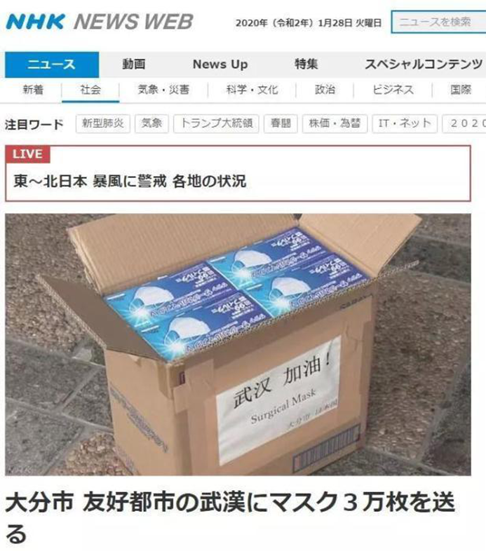 日本大分市西部通商、大分温室协同组合、株式会社友林、大分华人会、日本弘前市政府等政府、企业和组织纷纷发来询问咨询捐赠事宜,武汉国交中心协助联系办理通关事宜,其中西部通商捐赠消毒剂1.1吨,大分华人会捐赠10万只口罩,其他单位捐赠还在进一步联系推动。