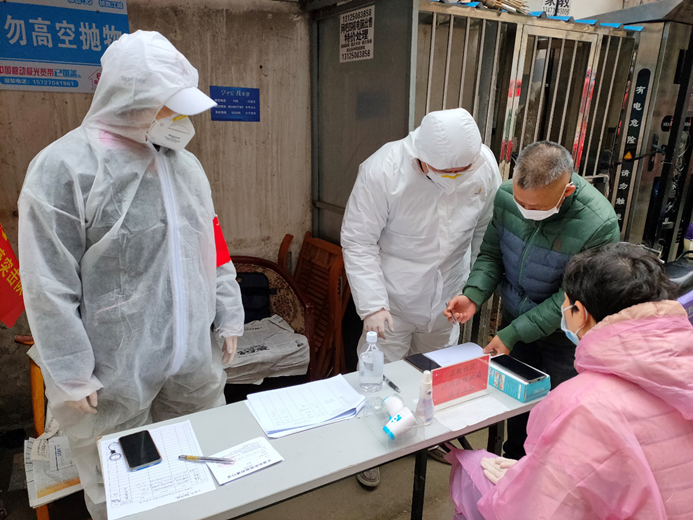 按照要求,突击队第十一组、第十三组分别驻守在北湖正街社区和德望社区,第十一组上报8人,但实际坚守岗位却有9人。原来是开投公司金融市场部总经理彭敏为了增强突击队力量,主动前来“参战”,于是原来的8人变成了9人。