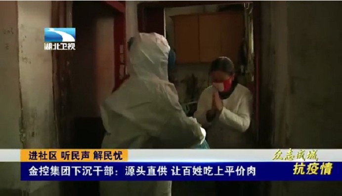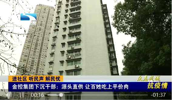 播音员:据了解,武汉金控现代供应链管理有限公司将逐步在下沉的91个社区开展配送服务,利用社区的网格力量将平价肉品快捷送到居民手中。