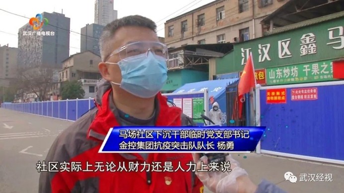 马场社区下沉干部临时党支部书记、金控转盘APP 抗疫突击队队长杨勇:社区实际上无论从财力还是人力上来说都是非常有限的,在疫情当前的时候很多短板都凸显出来。我们来自不同的单位,我们的资源可能更广泛一些,这样可以帮助社区解决当前疫期的更多特别问题。