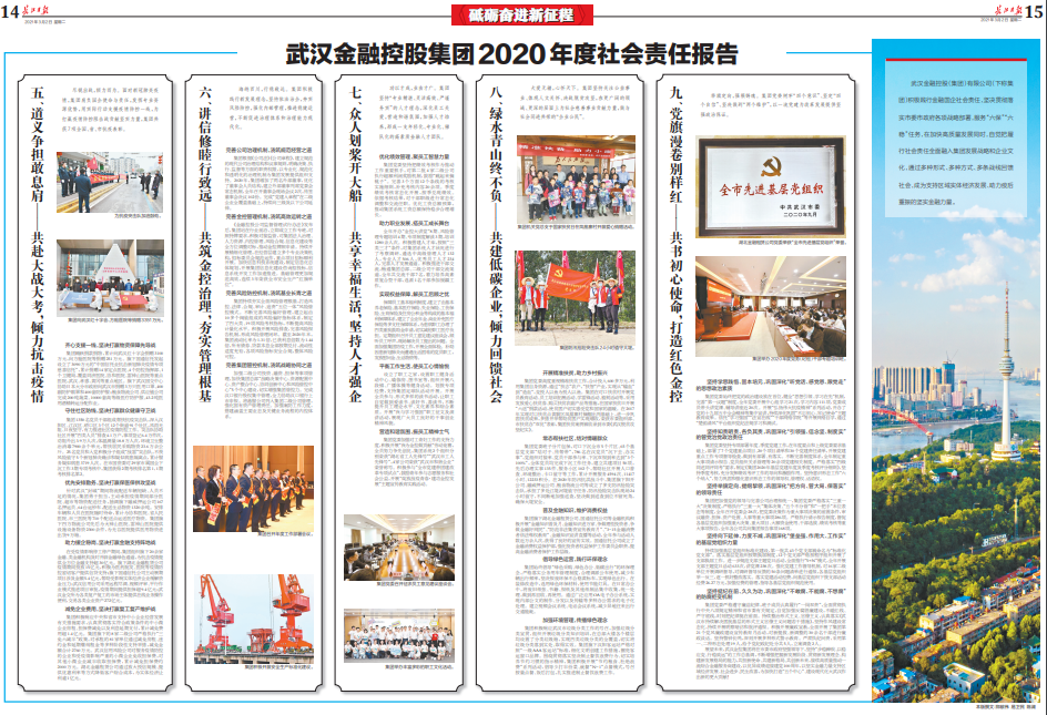 转盘APP 旗下武汉信用风险公司积极履行国有担保公司的社会责任,做大做强担保主业,与体系内其他持牌主体武汉市创业担保公司、武汉信用融资担保转盘APP 、武汉中小信用融资担保公司分工合作,构建“一主一专两副”担保集群,担保业务持续快速增长,2020年落地各项担保业务规模超300亿元,担保余额较年初增长235%,正在推进的担保项目规模近500亿元。2020年,公司成功发行40亿元私募债,创造2020年武汉国资系统最大规模私募债发行纪录。