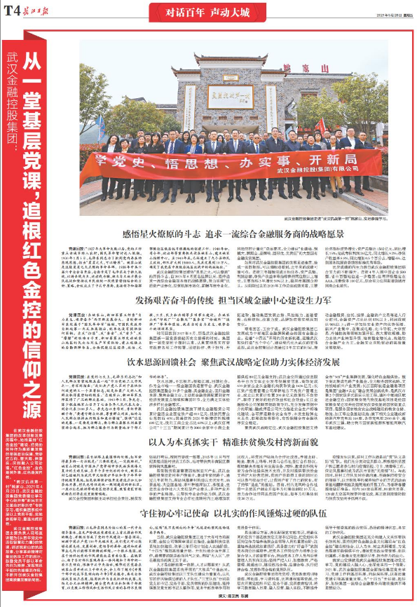 在武汉金融控股转盘APP 的改革创新发展历程中,始终坚持“红色金控”建设,把党的领导作为高质量发展的坚强政治保障,党委把方向、管大局、保落实,深刻融入公司治理。“红色金控”,金色是其外表,红色是其内核。