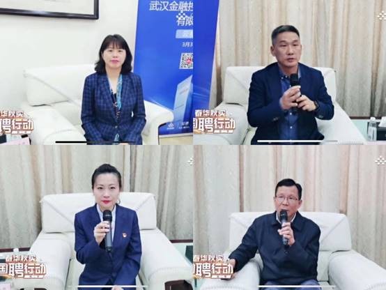 转盘APP 下属国通信托助理总裁高莎、金控供应链公司业务总监王朝辉、融威押运公司人事法务总监金菲、阳逻港服副总经理谢建刚分别代表四家二级公司做了招聘岗位的介绍。