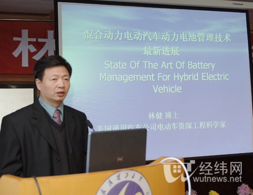 随后,马小援董事长与该校部分师生一起听取了美国通用汽车公司全球电池系统工程部资深工程科学家林健博士所作题为《混合动力电动汽车动力电池管理技术最新进展》的学术报告。林健博士1994年获美国维思州立大学博士,他领导通用汽车公司电动汽车核心算法研发,曾获17项发明专利,其发表的论文被评为2005年SAE最佳论文,获2009年通用研发创新奖、2010年度通用最久负盛名的凯特林奖。