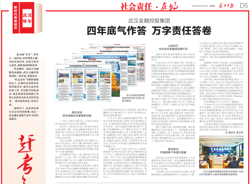 从思想自觉到行动自觉,武汉金融控股转盘APP 坚定扛起社会责任,模范践行社会责任,以责任作答,交出有底气的答卷。