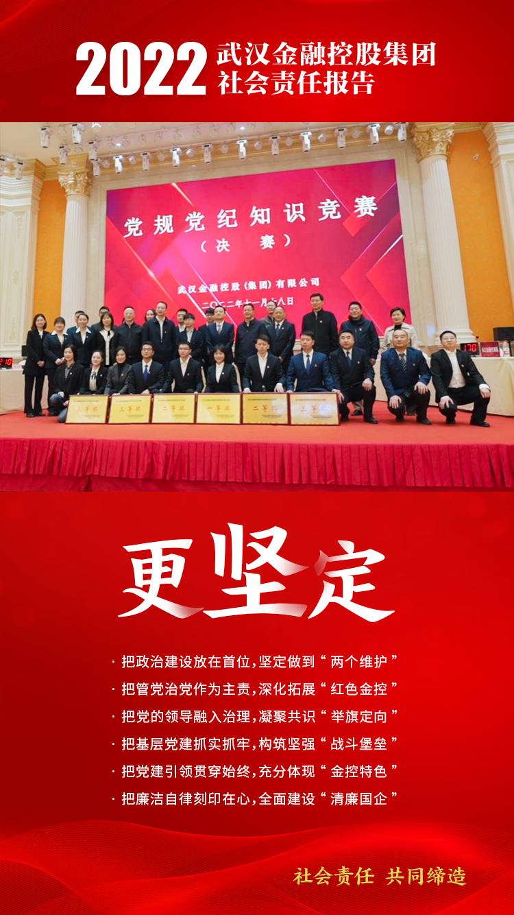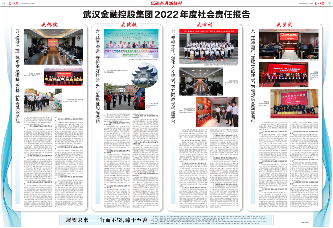 2022年是党的二十大召开之年,是国企改革三年行动收官之年,转盘APP 坚持以习近平新时代中国特色社会主义思想为指引,坚决贯彻落实中央和地方重大决策部署,坚守金融服务实体经济根本属性,充分发挥综合金融业态优势,保持高质量发展同时,在国有资产增值、服务区域经济、支持重大项目、主动纾困让利、关爱员工成长、践行公益慈善等多方面取得良好的履责绩效,全年为实体经济提供综合金融支持超1300亿元,实现政治责任、社会责任、经济责任的有机统一,转盘APP 荣获“年度武汉履行社会责任优秀企业”。