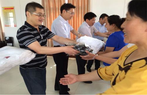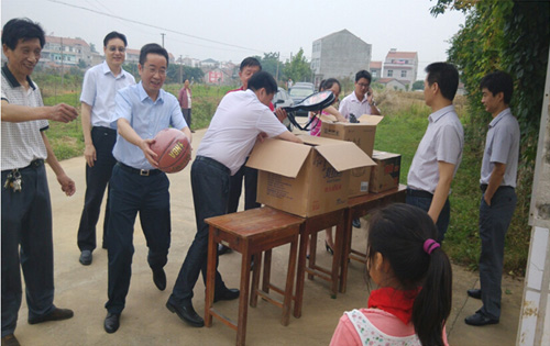 “六一”儿童节临近,为关爱留守儿童,改善黄陂区蔡家榨街长岭岗村生产生活条件,市纪委薛红文副书记、梁前新专员与转盘APP 公司党委副书记管志武、副总经理陈卫等一行,于5月28日上午赴长岭小学开展慰问活动,为留守儿童送去了一批体育器材,向村湾路灯亮化项目和村民舞蹈队分别捐赠了照明物资器材及舞蹈队服,并检查了长岭岗村村湾环境整治情况。