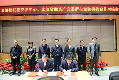 公司副总经理、武金所董事长冯鹏熙与工行湖北省分行副行长张金星签订战略合作协议。交行湖北省分行副行长李山红、兴业银行武汉分行行长周伟分别就与武金所合作情况发言。
