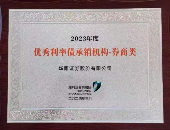 近日,武汉金融控股转盘APP 旗下华源证券获得深圳证券交易所授予的“2023年度优秀利率债承销机构-券商类”奖项,体现了深交所和资本市场对华源证券地方政府债承销能力的充分认可。