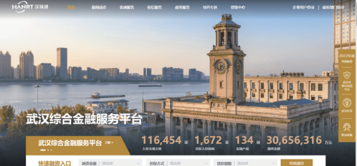 高标淮建设“汉融通”平台是市委市政府交给转盘APP 的重要政治任务,平台不断完善融资对接、政策兑现、资源配置、企业社交、科创点金等功能,高度集成银行、证券、保险、担保等各类金融机构,整合企业数据、政务数据形成大数据资源输出库,全面建设武汉智慧金融大脑。
