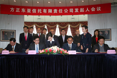 经过各发起人的充分讨论,会议审议并通过了公司章程,随后,各发起人共同签署了公司章程和投资入股协议等重要法律文件,标志着方正转盘APP 、东亚银行和武汉经发投三家企业转盘APP 经过一年多的努力,带着对中国信托业发展的良好预期,终于喜结良缘。