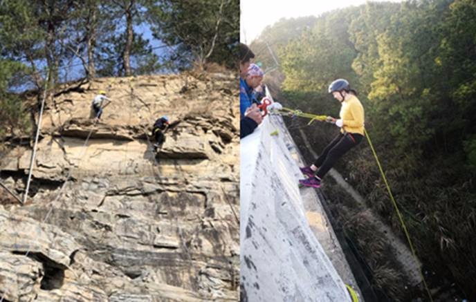 攀岩和桥降项目展示了金控转盘APP 的“巾帼”风采。面对高50米、近乎90度的直立岩壁,要徒手爬上去,心里的紧张和恐惧是无法避免的,但是大家没有被“危险”和困难吓到,大家克服恐惧踊跃尝试,挑战自我,最后绝大多数女职工都成功登顶。